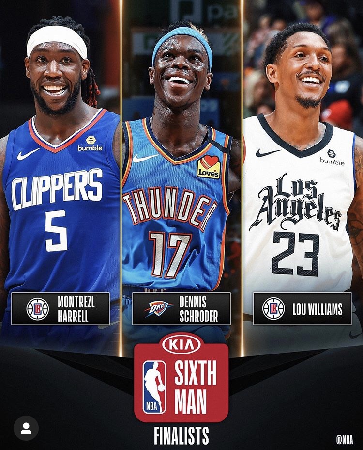 The winner of the 2019-2020 NBA 6th man of the year award should be Montrezl Harrell. This may come as a surprise to some of you, but if you look at the numbers, Harrell far and away had the best numbers out of both Dennis Schröder and Lou Williams.
