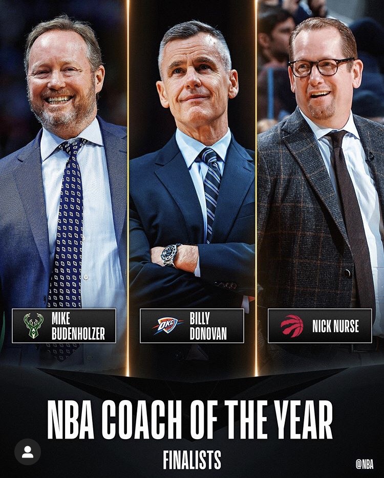 I like all three options for this year’s COY as they all have a compelling case to be made on why they should win this award. The one that I would say sticks out to me the most is Nick Nurse from the Toronto Raptors.